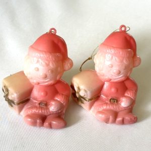 Vintage Plastic Blow Mold Santa Ornaments Lot of 2 Sitting Clown Santa 1960s