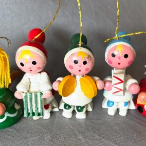 Vintage Wood Christmas Ornaments Lot Five Child Musicians Music Band Ornaments