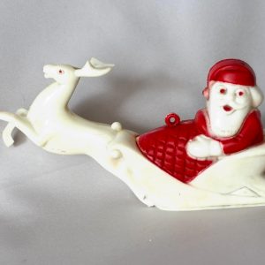 Vintage Irwin Santa Sleigh with Brush Tree USA Hard Plastic Christmas Decorations 1950s