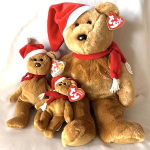 Holiday Teddy Plush Trio Ty Beanie Buddy Beanie Baby and Jingle Beanie Retired 1997