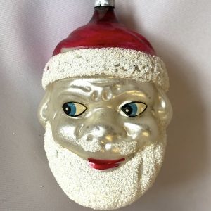 Vintage Santa Head Glass Ornament Paper Eyes, Flesh Face Santa German Christmas Ornament