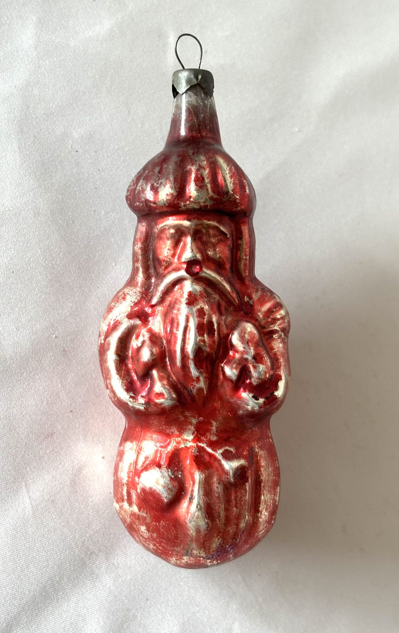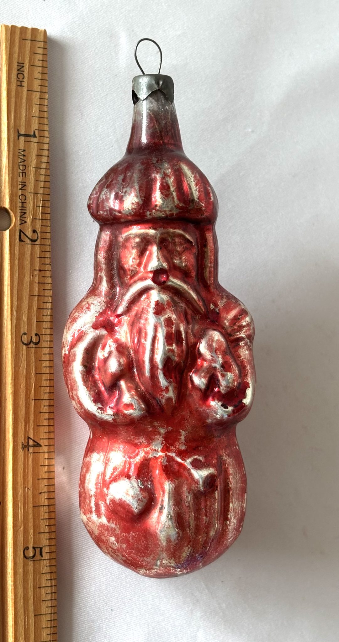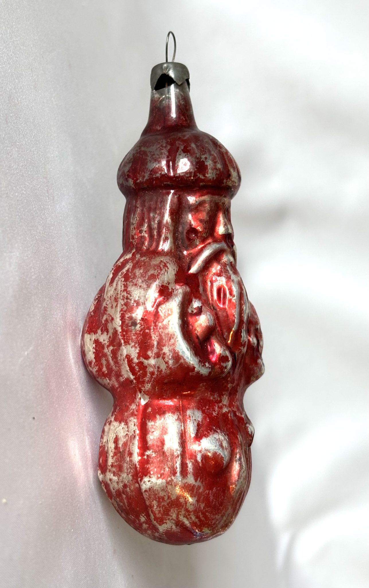 1930s Heidt Red Santa with Acorn Cap Jumbo Vintage USA Figural Glass Ornament