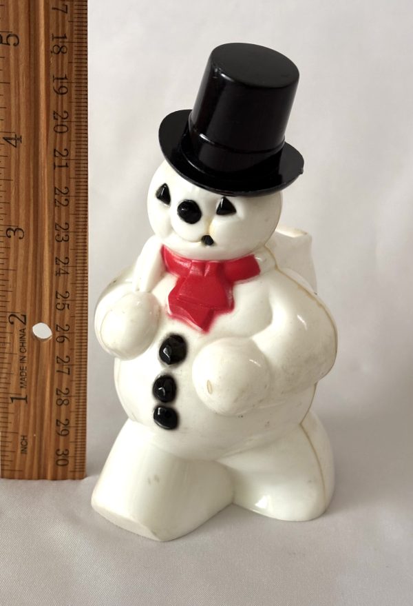 This is a wonderful vintage snowman to add to your hard plastic or candy container collection, a great gift to any snowman collector. Fun vintage Christmas decor collectible!